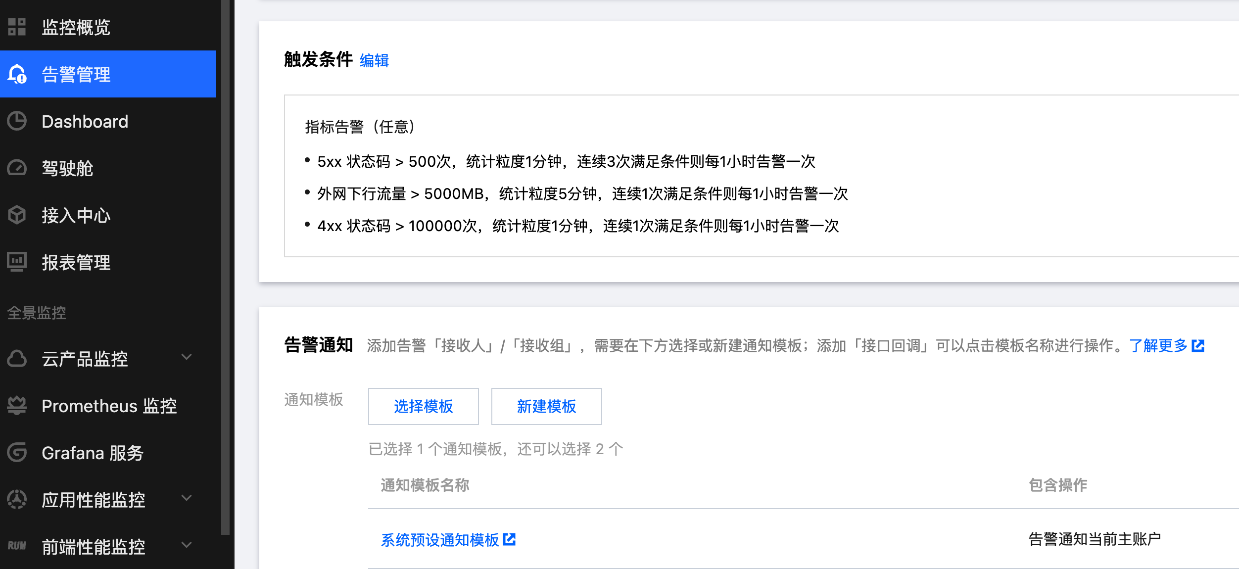 前面提到的策略是为了防止受到攻击,但如果真的出现了攻击,我们一定要在第一时间能够收到 “被攻击” 的通知,而不是直接收到 “欠费” 通知。