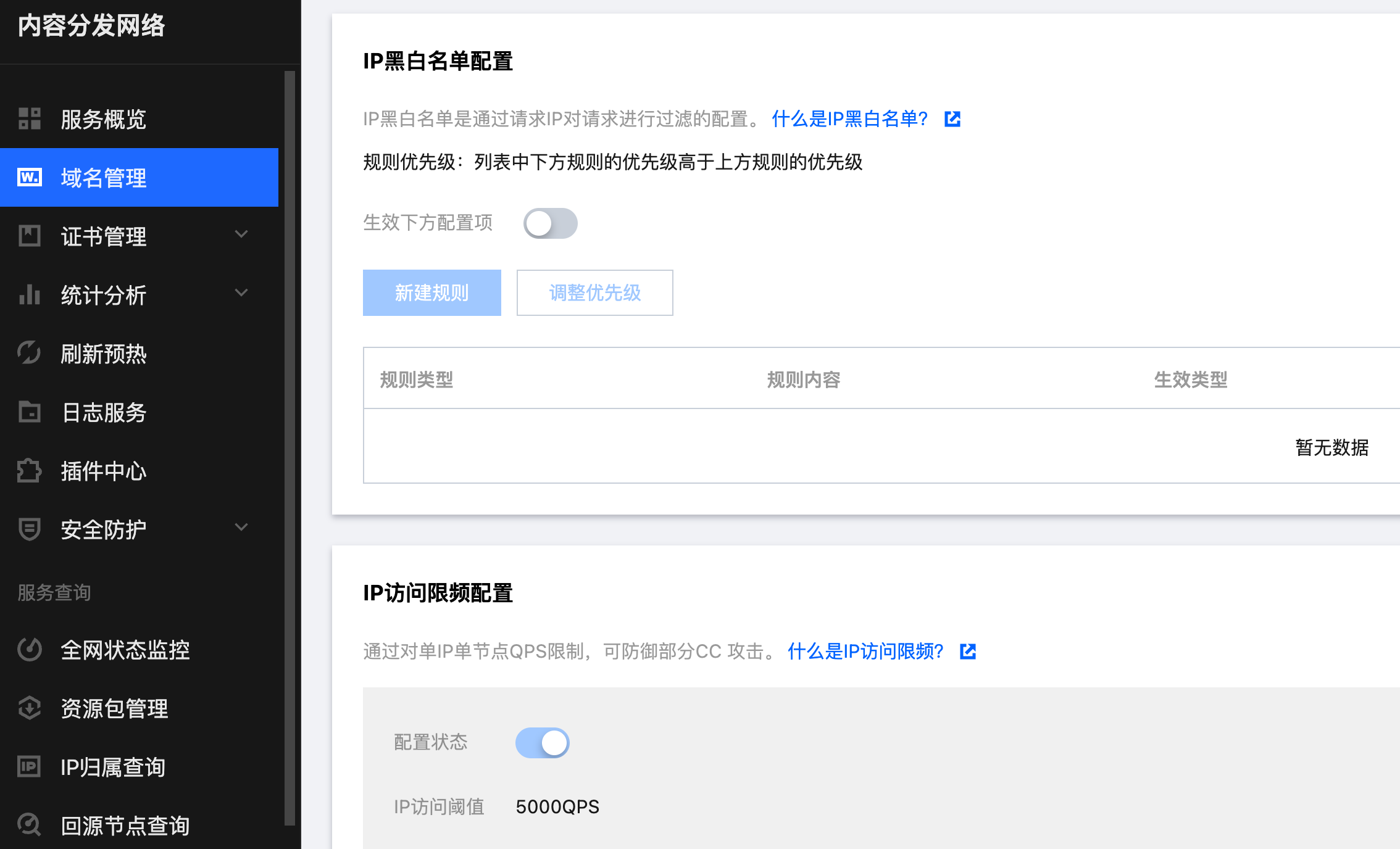 一般云服务平台都提供了限制或封禁攻击的手段,比如 IP 黑白名单、IP 访问限频、禁止某区域用户访问、禁止某些请求等。