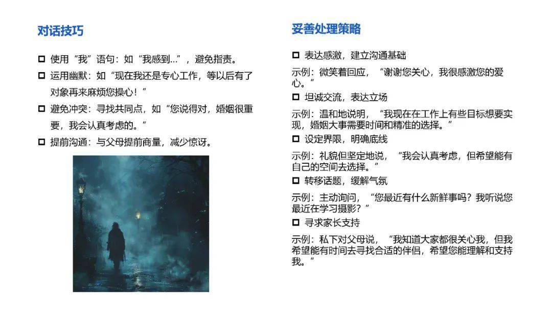 应对催婚:春节面对催婚,可按 DeepSeek 建议,先表达感激,再坦诚交流想法与计划、设定界限、转移话题、寻求家长支持,运用 “我” 语句、幽默等技巧,维护家庭和谐。